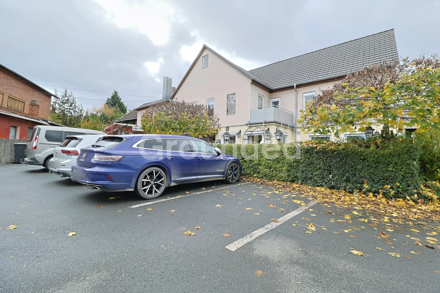 Nach dem Eingang, vor welchem sich eine Terrasse und Stellplätze befinden, erreichen Sie über einen kleinen Eingangsbereich die Theke sowie den Gastraum mit Natursteinboden. Letzterer bietet ausgiebig Platz für die Bewirtung zahlreicher Gäste und besitzt eine Garderobe sowie Zugang zu den Toiletten. Hinter der Theke befindet sich der direkte Zugang zur Gastroküche, über welche Sie das Treppenhaus erreichen. Von dort aus gelangen Sie in die Stube sowie die hinteren Lagerräume des Gasthofes, welche zusätzlich über einen Hintereingang erreichbar sind. Über das Treppenhaus gelangen sie in den Tanzsaal im OG, welcher noch das originale Parkett aufweist. Angrenzend an den Tanzsaal finden Sie einen Treppenaufgang in den Dachstuhl sowie Zugang zur Wohnung, welche ein Wohnzimmer, zwei Schlafzimmer und Toiletten aufweist.