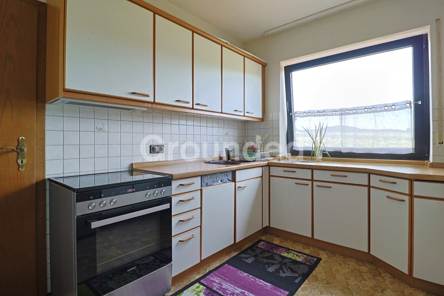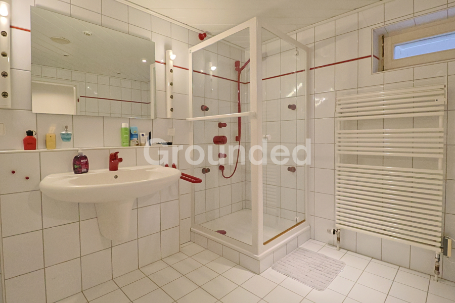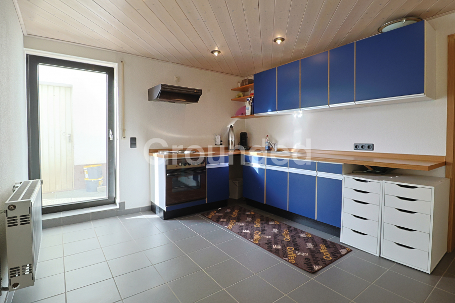 Das Untergeschoss liegt ebenerdig zum Garten und ist ebenfalls vom Treppenhaus erreichbar. Von der Diele aus erreichen Sie auch hier alle Zimmer, darunter ein weiteres Gäste-WC, eine Küche mit Zugang zum Garten, einen Hobbyraum und ein Büro mit jeweiligem Zugang zur Terrasse, ein weiteres Badezimmer mit Badewanne, Dusche und WC sowie den Heizungsraum mit angrenzendem Pellet-Speicher der im Jahr 2022 neu verbauten Pellet-Heizung.