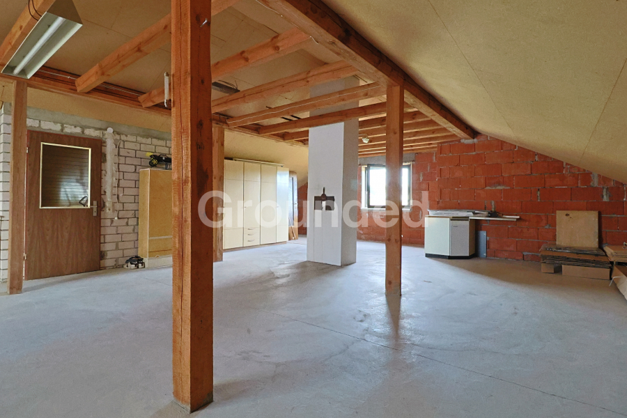 Das Dachgeschoss des Hauses ist über das Treppenhaus erreichbar und kann bei Bedarf zusätzlich ausgebaut werden. Die dort vorhandene Ausbaureserve beträgt ca. 74,78 m². Unter der Garage, ebenerdig zum Garten, liegt eine Werkstatt. Der Garten bietet viel Platz zum Spielen, Entspannen und Genießen. Die doppelt verglasten Kunststofffenster stammen aus dem Jahr 2013. Das Dach wurde 2021 gereinigt und versiegelt. Eine Solarthermie für die Warmwasser-Aufbereitung wurde zusammen mit der neuen Heizung 2022 installiert. Die Vinylböden im Erdgeschoss wurden im Jahr 2020 ebenfalls erneuert und im Untergeschoss wurden beim Ausbau zur Wohneinheit in den 1990er-Jahren die Fliesen neu gelegt.