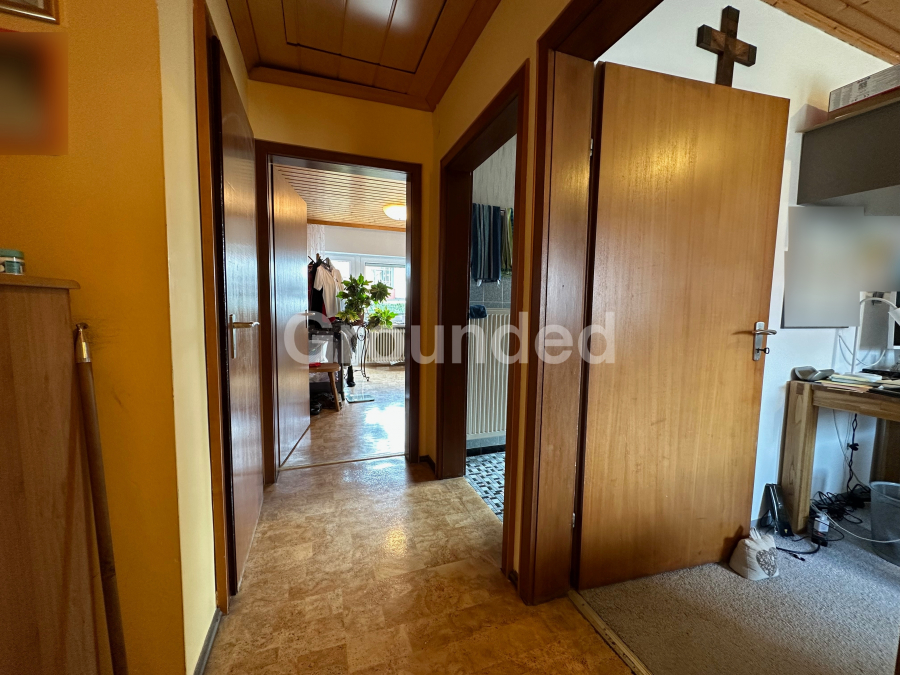 Dieses charmante, 1968 erbaute Einfamilienhaus befindet sich in einer ruhigen Gegend in Heilsbronn. Das Wohnhaus beläuft sich auf 83,41 m² Wohnfläche über 2 Etagen. Sie betreten das Haus vom Vorgarten über den Eingangsbereich im Erdgeschoss und gelangen von dort in die Küche mit Einbauküche, in das Gäste-WC und in das Wohnzimmer mit Balkon, Zugang zum Garten und Zugang zur Werkstatt. Über die Treppe mit Treppenlift gelangen Sie ins Obergeschoss mit Arbeitszimmer, das Badezimmer mit Duschbadewanne, ein separates WC und ein Schlafzimmer mit Balkon. Außerdem gibt es einen Aufgang zum nicht ausgebauten Dachgeschoss. Im Kellergeschoss befindet sich ein Kellerraum, ein Heizungsraum mit Öl-Tanks und ein Waschraum mit Waschmaschinenanschluss und Dusche. Im Jahr 1991 wurden Kunststofffenster mit Doppelverglasung eingebaut und die Heizung erneuert.