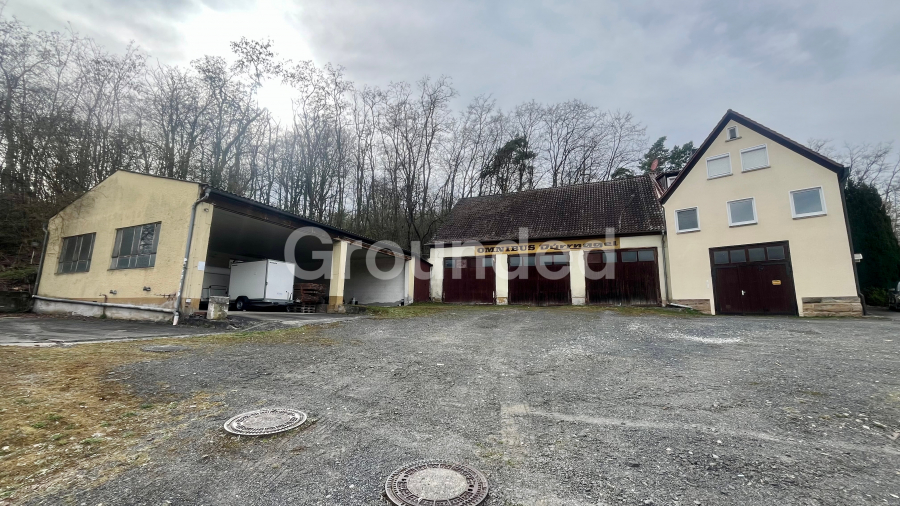 Das Anwesen bieten Ihnen durch seine vorherige Nutzung als Omnibusbetrieb ausgiebig Platz zur Verwirklichung Ihrer Wohn- und Geschäftsideen. Neben dem ausgiebigen Platzangebot ist links neben der offenen Fahrzeughalle auch ein Waschplatz mit Koaleszens-Abscheider vorhanden.