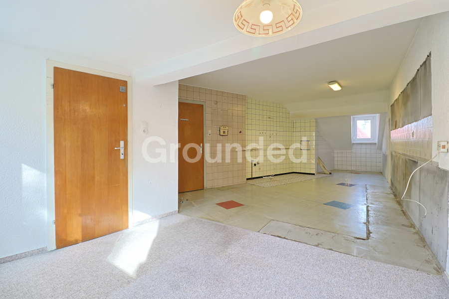 Trotz des bereits ausgiebigen Platzangebotes bietet das Anwesen weitere Ausbaumöglichkeiten in Form des aktuell unausgebauten Dachbodens über den Großraumgaragen, welchen Sie bequem über das 1. OG erreichen können.