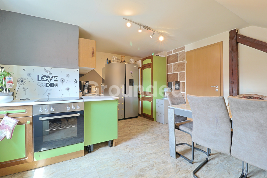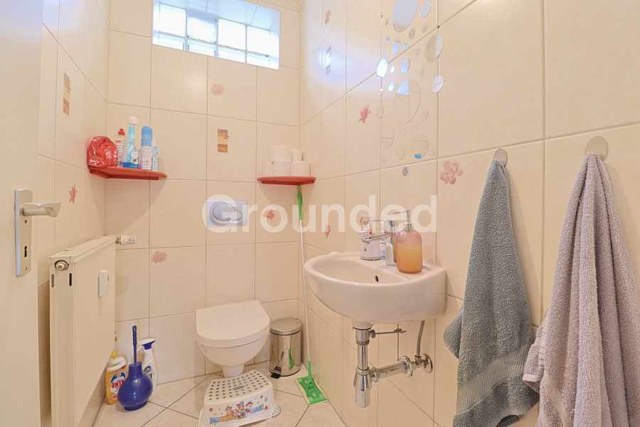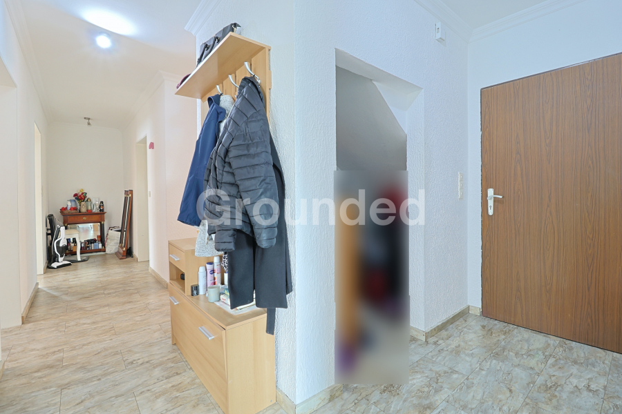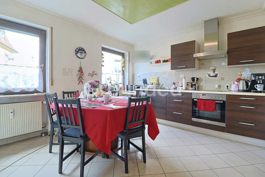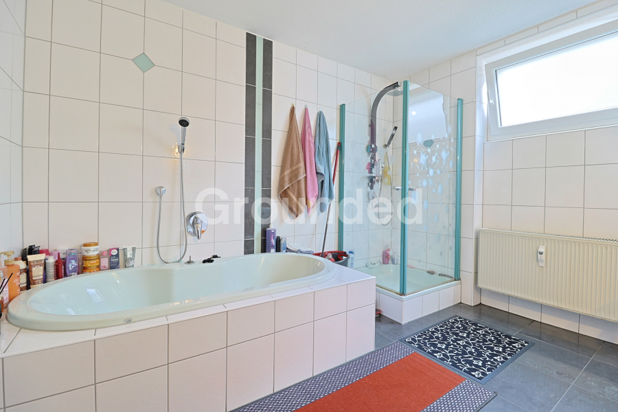 Die Wohnung im ersten Obergeschoss wird aktuell von den Eigentümern bewohnt und wird nach Verkauf des Hauses frei. Sie verfügt über eine Küche mit Abstellraum, ein Wohnzimmer, zwei Schlafzimmer, ein Gäste-WC sowie ein Badezimmer mit Dusche und Badewanne.