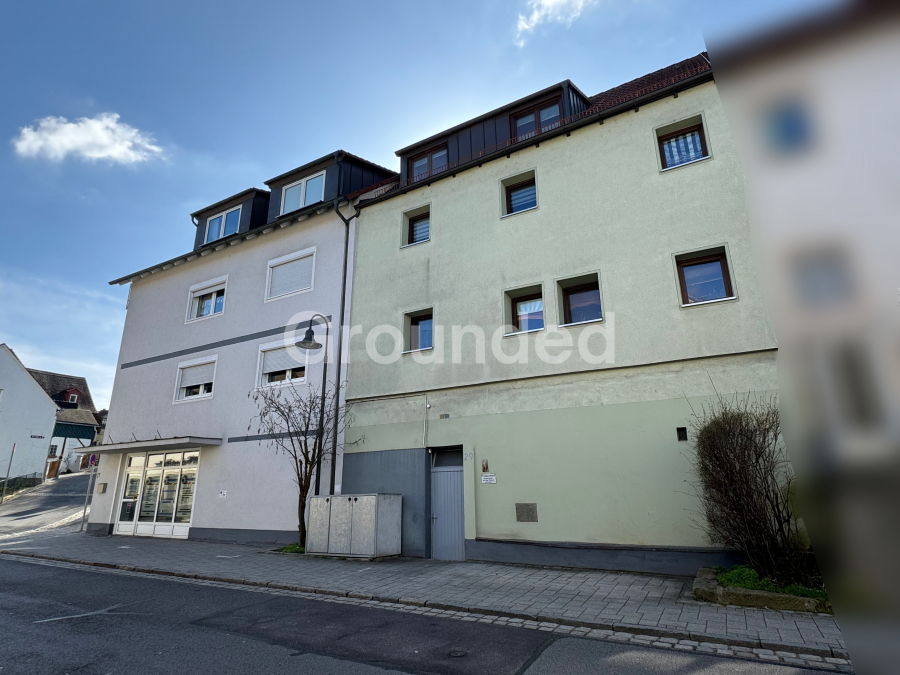 Das Mehrfamilienhaus, bestehend aus 2 Gebäudeteilen (HNr. 27+29) aus den Baujahren 1986 bzw. 1956 hat eine vermietbare Fläche von insgesamt ca. 551,44 m². Davon fallen 108,54 m² auf die gewerbliche Fahrschule und 442,90 m² auf die übrigen 6 gepflegten Wohneinheiten.