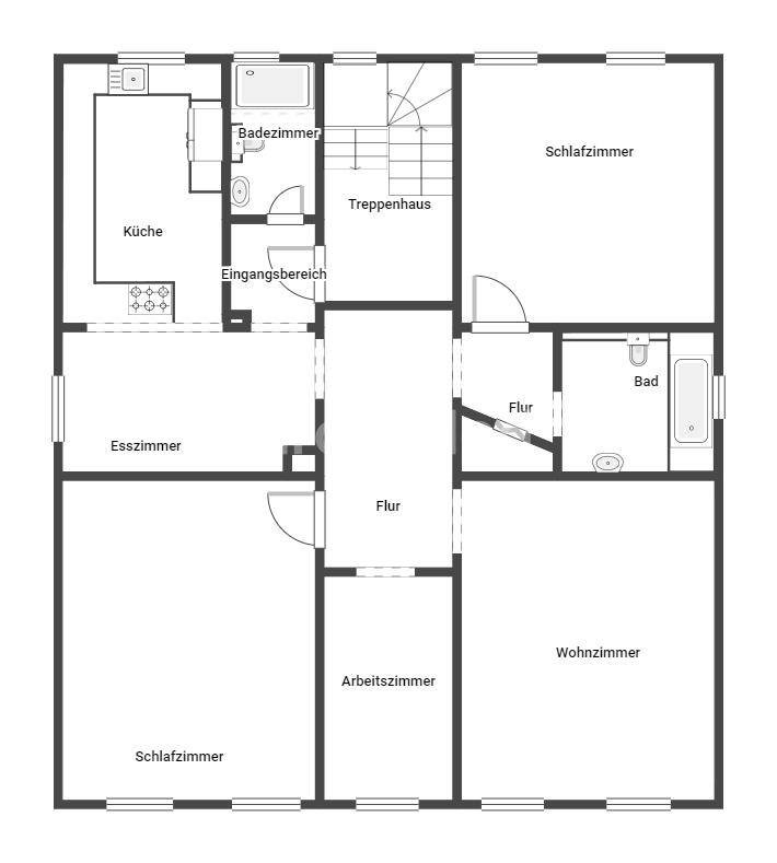Das 1890 erbaute, geräumige Mehrfamilienhaus bietet auf drei Ebenen, vier Wohnungen und eine Gesamtwohnfläche von ca. 242 m². Im Erdgeschoss hinter der Eingangstüre rechts befindet sich eine der Wohnungen auf dieser Ebene. Die zweite Wohnung schließt sich weiter hinten auf der linken Seite an. Beide haben den gleichen Grundriss, vom Eingangsbereich, kommen Sie direkt in die Küche, rechts befindet sich das Schlafzimmer und Badezimmer mit Duschbadewanne und Waschmaschinenanschluss. Gegenüber auf der linken Seite liegt der Wohn-Essbereich. Im ersten Obergeschoss gelangen sie über den Eingangsbereich ins Esszimmer und die Küche mit Einbauküche und das Gästebadezimmer mit Dusche. Durch den Flur erreichen Sie das Wohnzimmer, ein Schlafzimmer, ein Arbeitszimmer und über einen weiteren Flur ein weiteres Schlafzimmer und das Badezimmer mit Badewanne. Das Dachgeschoss wurde entkernt und bietet neben dem Eingangsbereich mit angedachtem Badezimmer noch fünf weiter Räume. Der Spitzboden ist entkernt und wurde als Lagerraum benutzt, er kann außerdem ausgebaut werden. Im Hinterhof des Hauses befindet sich ein Garten mit Gartenhaus, welches auch als Lagerräume für die Wohnungen genutzt werden kann, jedoch auch weiteres Ausbaupotenzial biete.