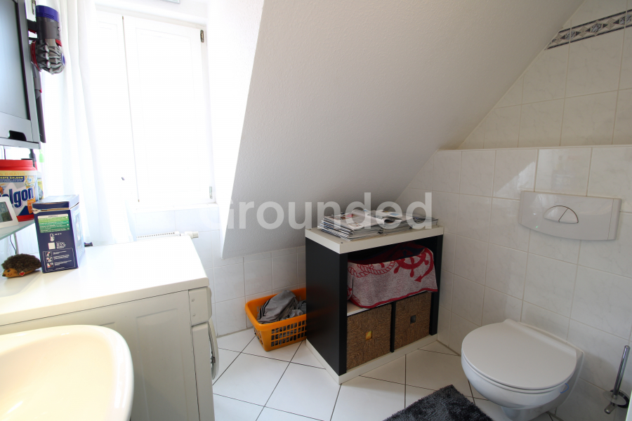 In zentraler Lage nur ca. 8 km von der Nürnberger Innenstadt entfernt, finden Sie diese gepflegte 3-Zimmer-Wohnung mit einer Wohnfläche von rund 77 m². Die Immobilie befindet sich im Dachgeschoss, welches 2005 komplett neu aufgebaut wurde. Nach dem Betreten der Wohnung ist rechts eine Nische für die Garderobe und links erreichen Sie ein kleines Arbeitszimmer. Wenn Sie den Flur weitergehen, gelangt man auf der rechten Seite in das geräumige Wohn- und Esszimmer, davon zweigt rechts die Küche ab. Die Wohnung ist zurzeit vermietet, die Einbauküche ist Mietereigentum. Vom Wohnzimmer aus erreicht man durch einen Durchgang das Schlafzimmer. Geht man den Flur weiter, befinden sich links die Toilette und das Bad. Die Toilette mit Waschmaschinenanschluss ist vom Bad mit Badewanne separiert. Am Ende des Flures finden Sie einen separaten Raum vor, der als Kinderzimmer, Lagerraum oder weiteres Arbeitszimmer genutzt werden kann. Es besteht ein Sondernutzungsrecht am Spitzboden und Remisenabteil, außerdem sind die gemeinschaftliche Nutzung des Fahrradraumes und ein Außenstellplatz für Ihren PKW im Kaufpreis enthalten. Das monatliche Hausgeld beträgt 280,00€ und die Jahresnettokaltmiete 6.576,00€.