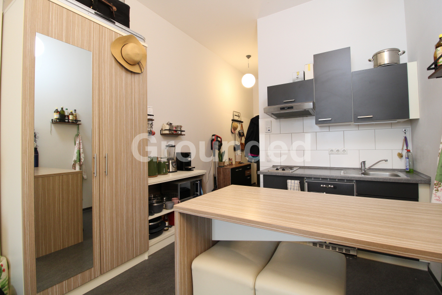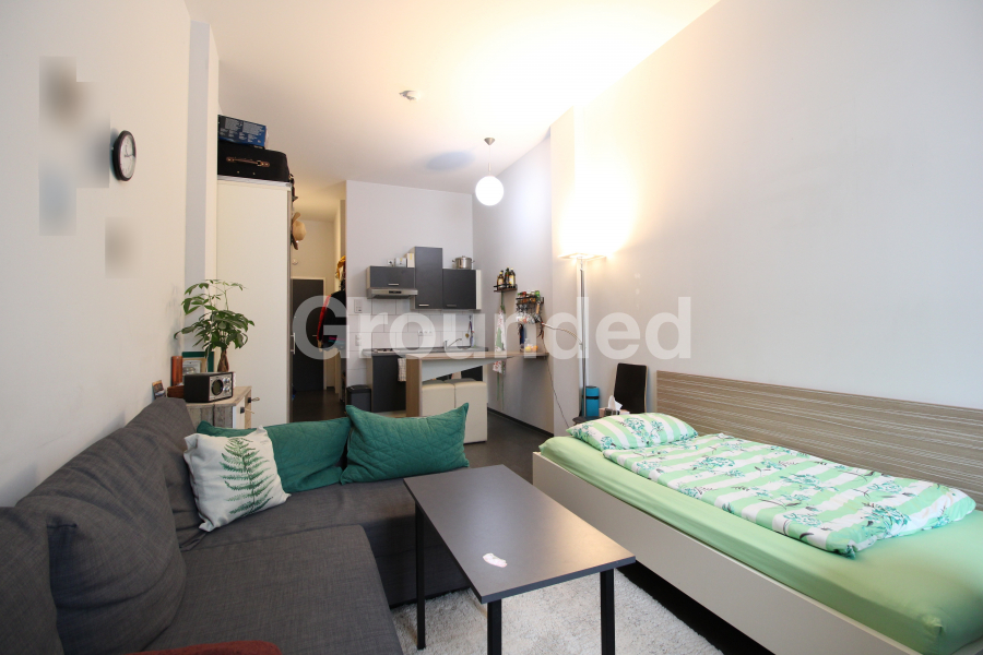 Über einen Personenaufzug gelangen Sie bequem in das vermietete und voll möbilierte 1-Zimmer-Studentenapartment im ersten Stock. Dieses beläuft sich auf 29,81 m² und bietet nach dem Betreten einen Flur, ein Bad und den Wohn-Schlafbereich mit Küche. Diese ist ausgestattet mit einer Mikrowelle mit Backfunktion, einem Kühlschrank und zwei Kochfeldern. Links vom Eingangsbereich liegt das moderne Badezimmer mit Dusche. Die Zentralheizung (Fernwärme) ist wie die dreifach verglasten Fenster aus dem Sanierungsjahr 2012. Der Mietvertrag des Appartements kann zum Semesterwechsel beidseitig mit einer Kündigungsfrist von 2 Monaten gekündigt werden. Die Jahresnettokaltmiete beträgt aktuell 4.080,00 €, die Nebenkosten wurden zum 01.12.2022 von 80,00 € auf 160,00 € erhöht.