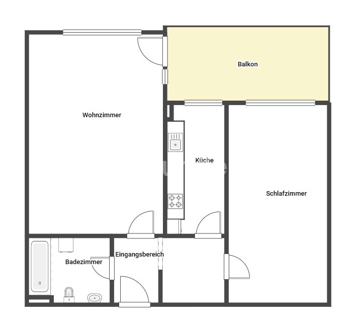 Mit einer Wohnfläche von 62,93 m² überzeugt die Wohnung durch eine durchdachte Raumaufteilung: Nach dem Eingangsbereich befindet sich auf der linken Seite das Badezimmer mit Duschbadewanne und Waschmaschinenanschluss. Geradeaus gelangen Sie in das Wohn- und Esszimmer, das direkten Zugang zum Balkon bietet.