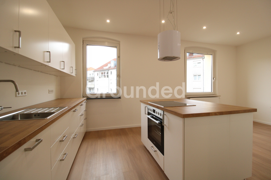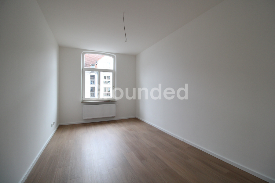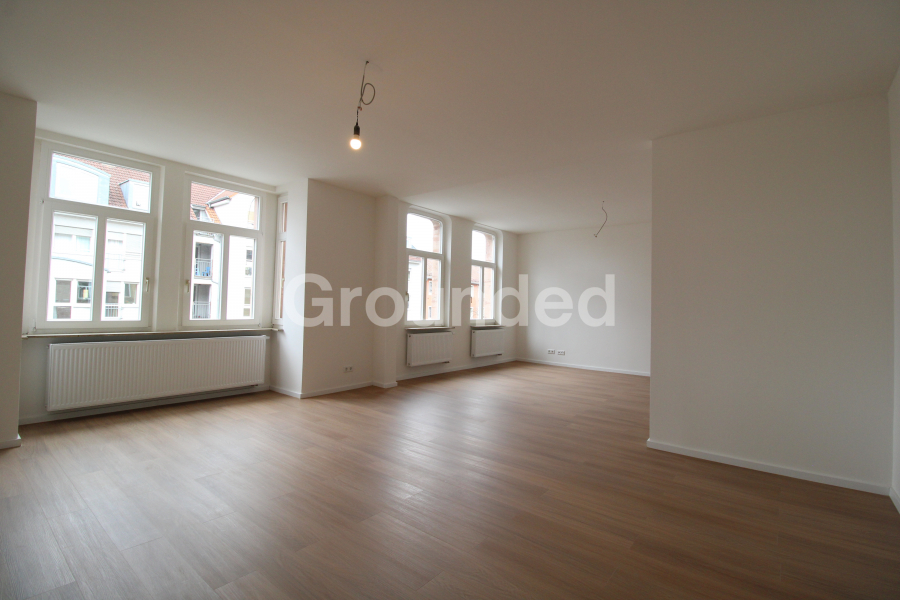 Diese moderne, charmante, helle 5,5-Zimmer-Wohnung, die 2022/2023 fertig saniert wurde, beläuft sich auf ca. 154,28 m² und befindet sich im 3. Obergeschoss. Das Haus wurde 1904 erbaut, die Fassade wurde ca. 2014 erneuert und das Treppenhaus wird noch saniert. Vom Eingangsbereich aus betreten Sie den Flur, über den Sie alle Zimmer der Wohnung erreichen. Auf der rechten Seite liegen zwei Schlafzimmer und eine kleine Abstellkammer sowie ein Zugang zum geräumigen Wohnzimmer. Auf der linken Seite befindet sich das Gäste-WC mit Dusche und direkt nebenan das Tageslichtbadezimmer mit Dusch-Badewanne und Waschmaschinenanschluss. Gegenüber liegt ein weiterer Zugang zum geräumigen, hellen Wohnzimmer. Weiter hinten im Flur erreichen Sie die moderne Küche mit Einbauküche und Esszimmer, den Technikraum und das große Schlafzimmer. Bei der Kernsanierung wurde ein neuer Bodenaufbau vorgenommen, die gesamten Wände mit Gewebe versehen und neu verputzt, neue Türen sowie eine neue, vollausgestattete Einbauküche eingebaut. Außerdem wurden die Sanitäranlagen sowie die Elektrik (beide inklusive Leitungen) erneuert und die Heizung wurde ca. 2014 erneuert. Die doppelverglasten Holzfenster und Fensterbretter wurden ca. im Jahr 1995 eingebaut. Ein Kellerabteil zur Lagerung ist ebenfalls vorhanden.
