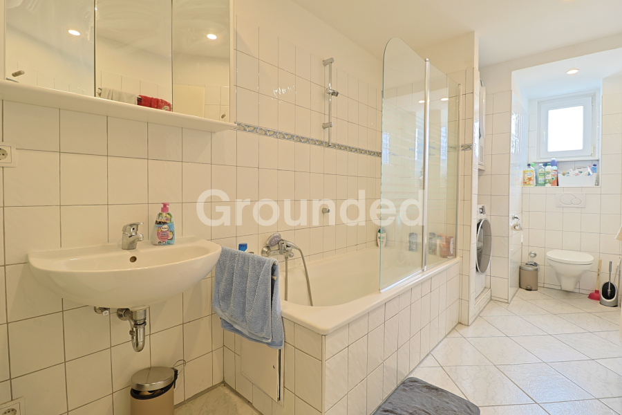 Die Wohnung ist darüber hinaus durchgehend mit energiesparenden LED-Spots versehen, sodass zusätzliche Deckenlampen oder Leuchten überflüssig sind. Zur gemeinschaftlichen Nutzung stehen ein großer Kühlschrank, eine Geschirrspülmaschine, eine Mikrowelle sowie eine Waschmaschine und ein Wäschetrockner bereit. Eine Einbauküche ist ebenfalls vorhanden.