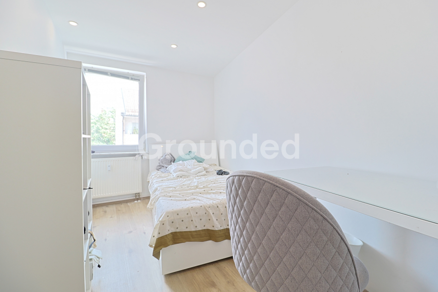 Diese großzügige 6-Zimmer-Wohnung im 3. Obergeschoss eines 1960 aufgestockten und 2008 sanierten Gebäudes bietet ideale Voraussetzungen für komfortables Wohnen. Die WG-Zimmer der insgesamt 123,56 m² großen Wohnung sind teilmöbliert und mit Bett, Schrank, Regal sowie einem elektrisch höhenverstellbaren Schreibtisch und Stuhl ausgestattet.