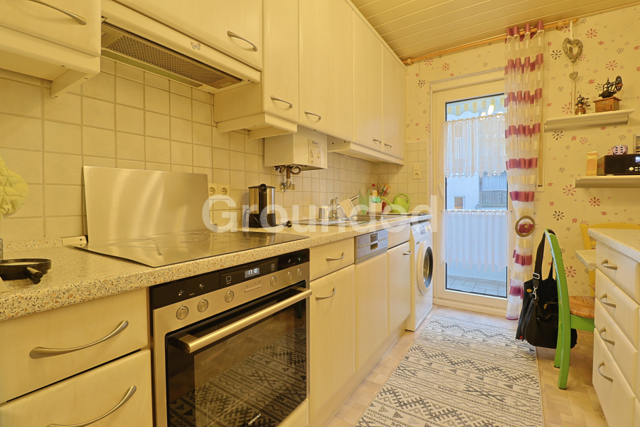 Die Raumaufteilung umfasst ein großzügiges, helles Wohnzimmer, eine geräumige Küche, ein praktisches Badezimmer und ein komfortables Schlafzimmer. Alle Räume weisen einen gepflegten Zustand durch sorgsamen Umgang auf.