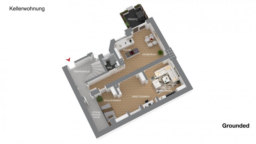 In zentraler Lage nahe der Fürther Innenstadt, finden Sie diese 1-Zimmer-Wohnung mit einer Wohnfläche von rund 85,42 m², die sich auch perfekt als Büro eignen würde. Die Immobilie befindet sich im Erdgeschoss, dass 2014 zu Wohnzwecken umgewandelt wurde. Die Wohnung wurde 2014 renoviert, allerdings können Schönheitsreparaturen an den Böden, Küche und den Wänden vorgenommen werden. Sie befindet sich in einem 1907 erbauten, denkmalgeschützten Haus mit 13 Wohnungen. Die Immobilie kann über den Eingang im Treppenhaus oder die Terrasse im Hinterhof Richtung Badstraße betreten werden. Nach dem Betreten der Wohnung ist rechts der Schlafbereich, welcher aber auch über den geräumigen Wohn- und Essbereich mit Einbauküche erreicht werden kann. Auf der linken Seite befindet sich das Badezimmer mit Dusche. Durch den langen Flur erreichen Sie die offene Einbauküche mit Essbereich und angrenzender, eigener Terrasse. Durch gemauerte Rund-Bögen sind Ess-, Wohn-, Arbeits- und Schlafbereich optisch voneinander getrennt. Der Boden ist ursprünglich gefliest, die Mieter haben aber Laminat darübergelegt. Ein eigenes Kellerabteil mit Staufläche steht zur Verfügung. Die Jahresnettokaltmiete beträgt 7.800,00€ und das monatliche Hausgeld 196,00€. Nach Kontaktaufnahme mit Grounded werden Bilder des Innenbereichs auf Wunsch zugesendet.